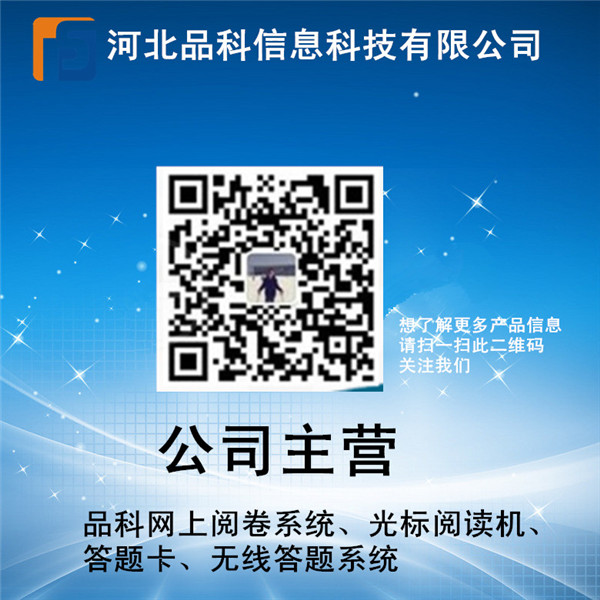 品科為全國用戶提供信息卡 機讀卡 高考網(wǎng)上閱卷系統(tǒng)、多功能光標(biāo)閱讀機、外包型閱卷服務(wù)以及包括答題卡、智能軟件定制服務(wù)及答題卡讀卡機,主要應(yīng)用于考試閱卷評分。教學(xué)評估,和各類問卷等。